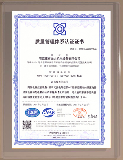 石家莊市光大機電設備有限公司位于石家莊市新能源和智能制造園區(qū)光大路2號,緊鄰107國道,交通便利。公司匯聚了一批鈑金、強電、弱電技術、安裝施工人員,并有河北科技大學、石家莊大學等高校的技術支持與協(xié)作,擁有全系列的剪、折、沖、焊、安、檢等先進的生產和檢測設備,嚴格執(zhí)行已順利通過的國家強制3C和ISO9001質量標準和規(guī)范。...